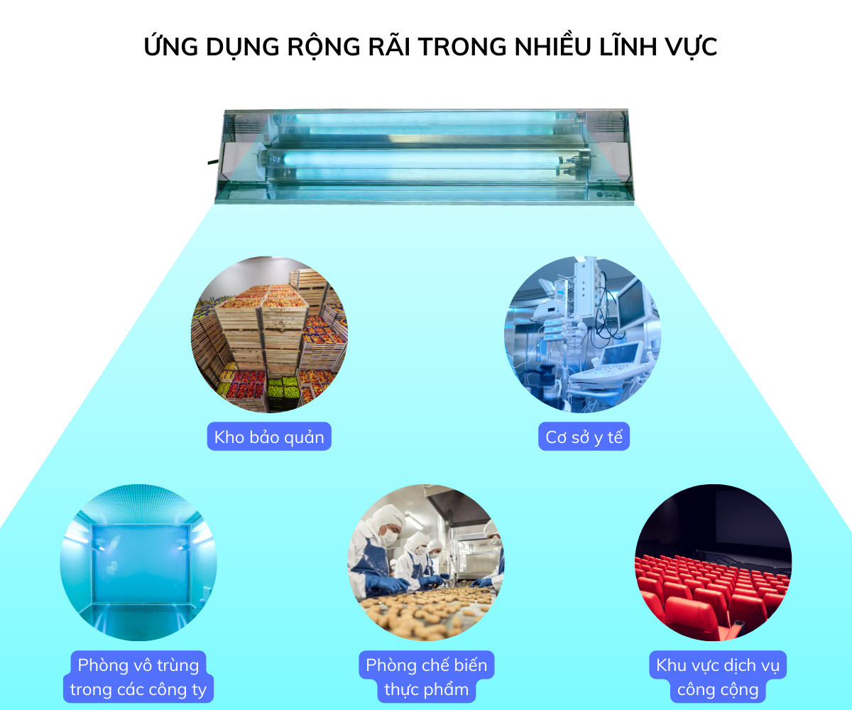 Sử dụng tại các cơ sở sản xuất yêu cầu cao về mức độ khử trùng, nhằm bảo quản sản phẩm tốt hơn trong thời gian dài như phòng chứa hoa quả, phòng trữ bánh mì tươi, kho chứa công cụ dụng cụ, kho để thực phẩm,...