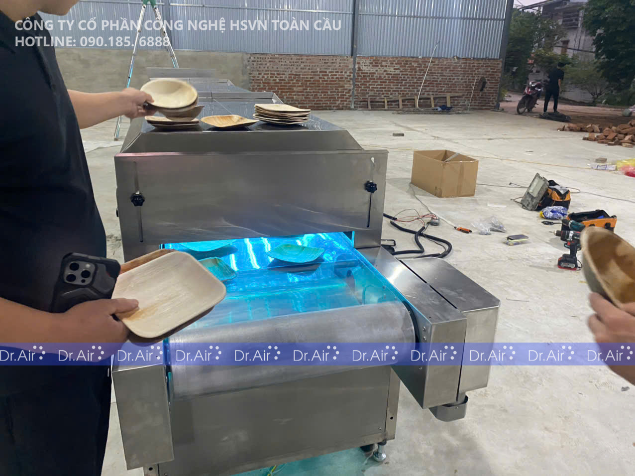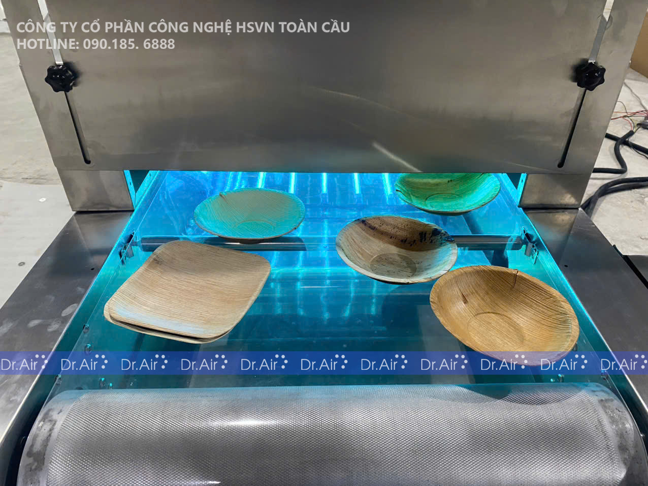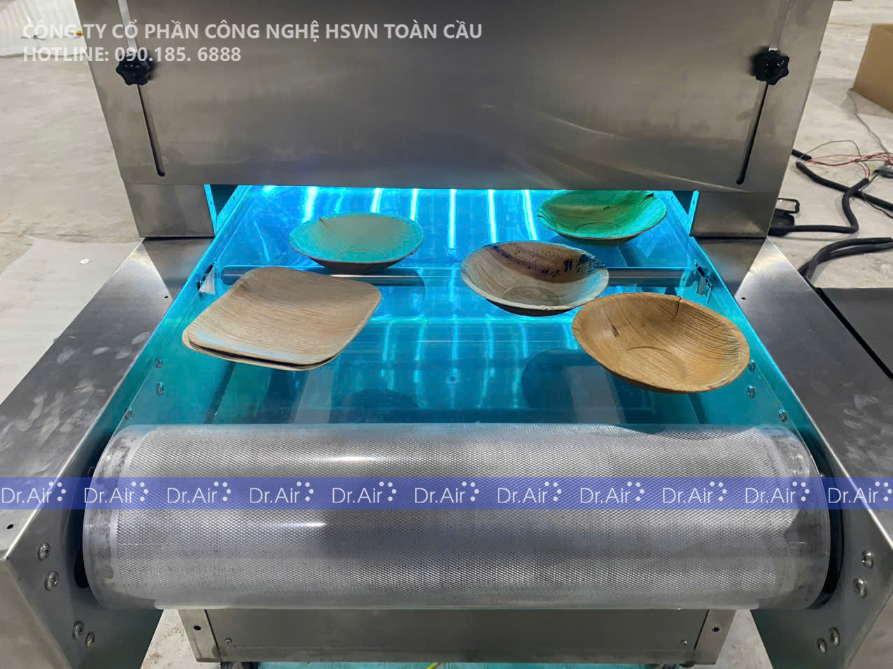 Công ty TNHH ILEAF sử dụng Máy băng chuyền Dr.Air UV-6M khử trùng sản phẩm bát đĩa từ mo cau xuất khẩu đi Châu Âu và Nhật Bản