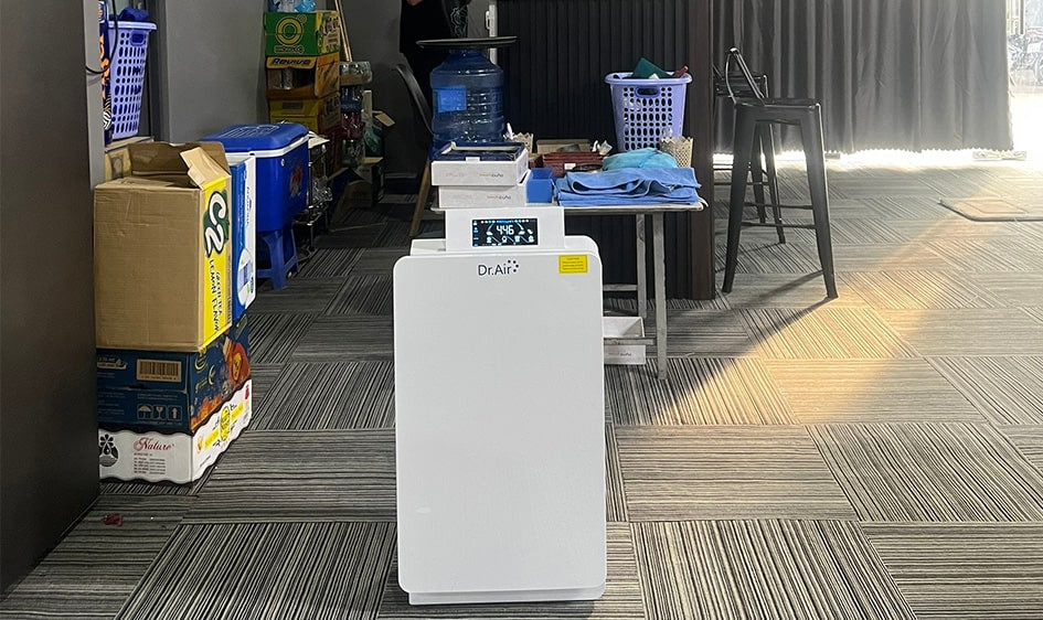 - Công nghệ Ion âm: Sản sinh 20 triệu ion âm/cm3, Dr.Air Pro Max loại bỏ 97% hạt ô nhiễm và tiêu diệt 95% vi khuẩn trong không khí. Không chỉ làm sạch không khí, ion âm còn giúp cải thiện tâm trạng, giảm stress, tăng cường năng lượng cho nhân viên.