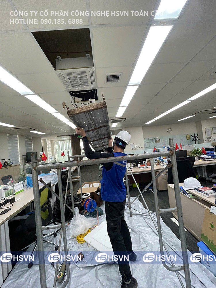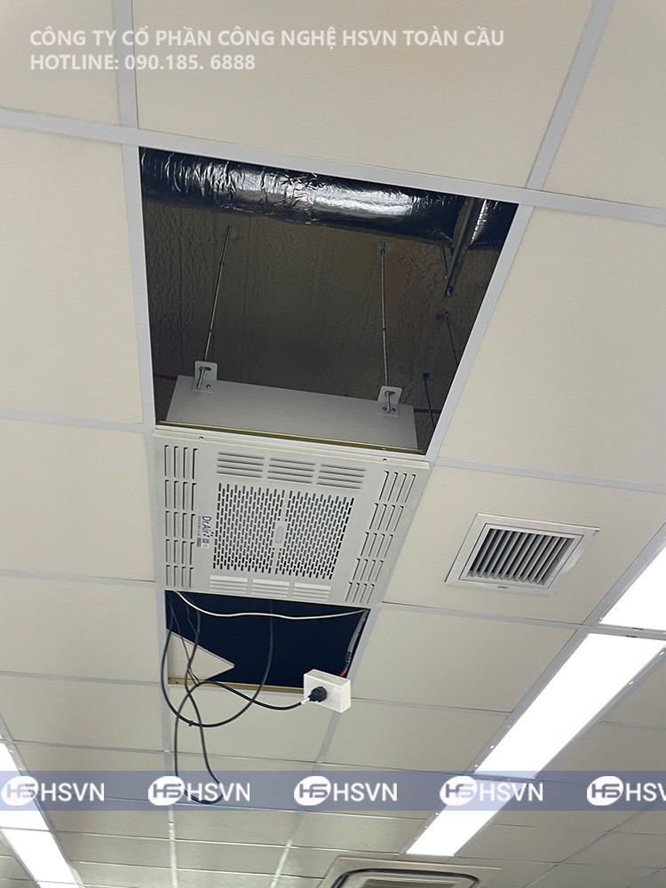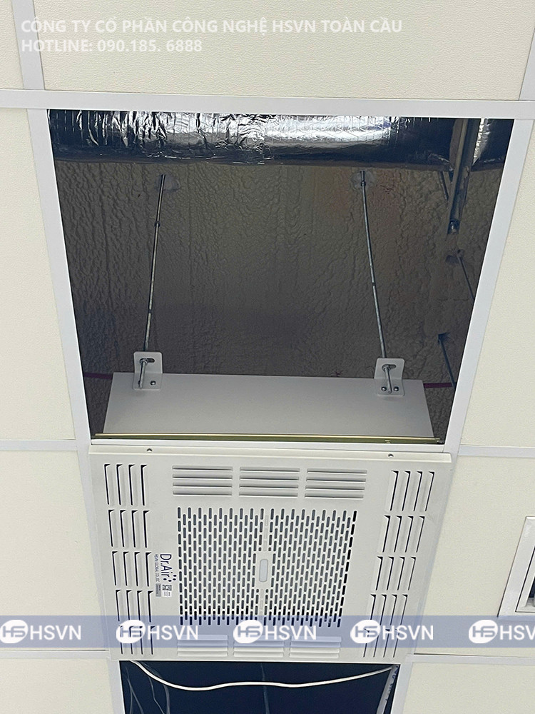 Dưới đây là một số hình ảnh quá trình đội ngũ kỹ thuật HSVN Toàn Cầu lắp đặt 02 Máy lọc không khí âm trần Dr.Air Like Boss tại Văn phòng Nhà điều hành, KCN Thăng Long II: