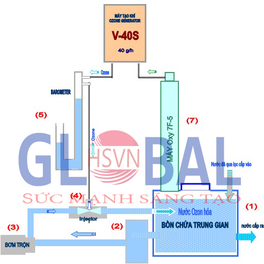 Loại máy ozone sử dụng: 01 máy ozone công nghiệp V40 + 01 bộ phát khí oxi