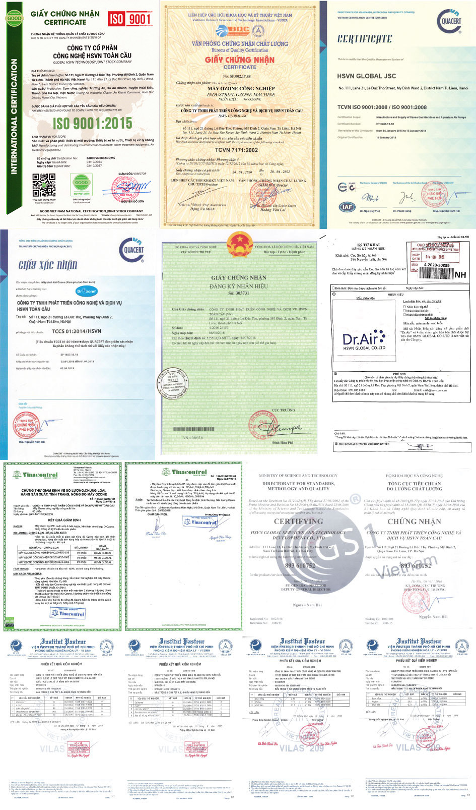 Chứng nhận chất lượng sản phẩm & thương hiệu DrOzone
