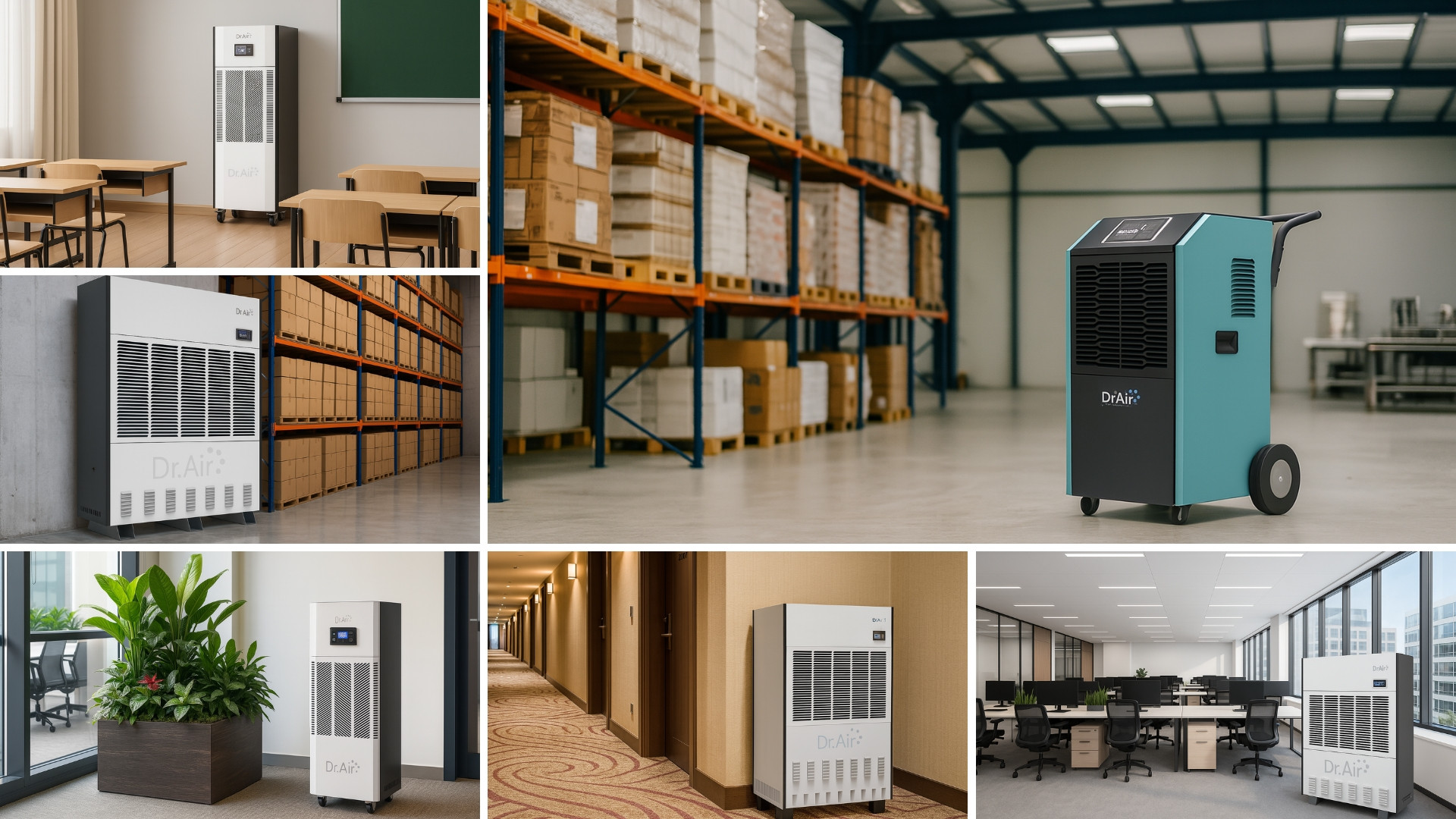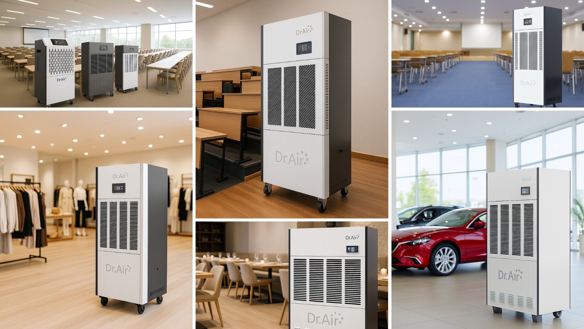 Tại kho hàng, phòng thiết bị, phòng máy lạnh: Với các khu vực yêu cầu bảo quản hồ sơ, giấy tờ, bản mạch điện tử, thiết bị y tế… Dr.Air HA giúp duy trì môi trường ổn định quanh năm, bảo vệ sản phẩm khỏi hư hại do ẩm mốc.