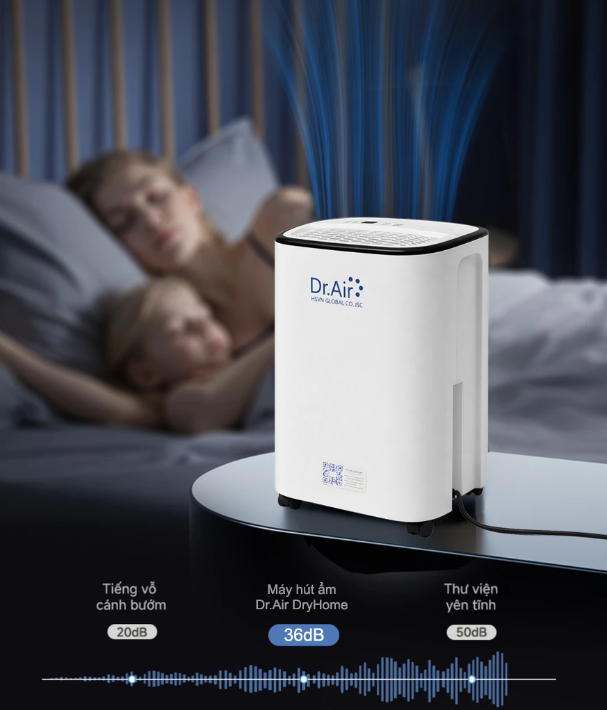 Tiếng ồn là yếu tố quan trọng khi chọn mua thiết bị cho phòng ngủ. Với độ ồn chỉ 36dB, Dr.Air Dryhome D12 hoạt động êm ái như một tiếng thì thầm. Bạn hoàn toàn có thể đặt máy ngay cạnh giường ngủ, trong phòng em bé hay phòng đọc sách mà không lo bị làm phiền. Giấc ngủ của bạn sẽ được bảo vệ trọn vẹn trong bầu không khí trong lành.