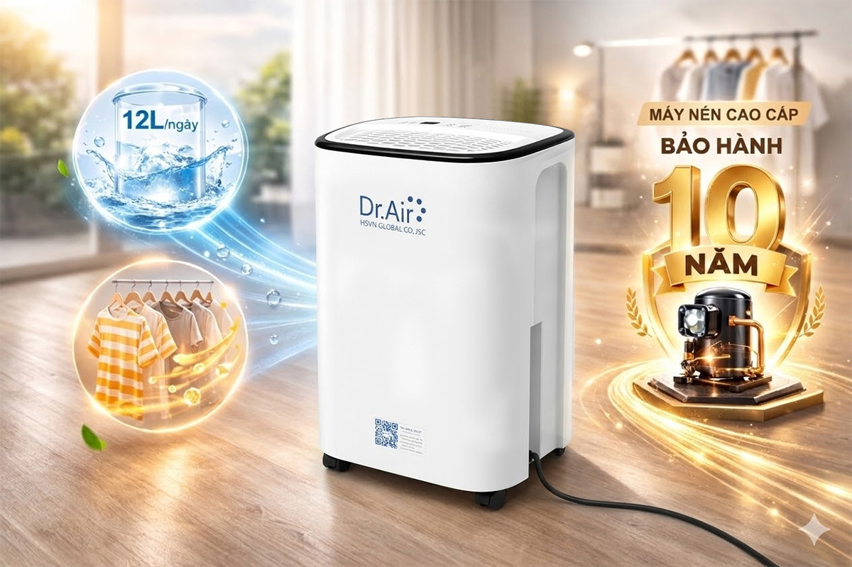 Đừng để mùa nồm ẩm ướt làm ảnh hưởng đến chất lượng cuộc sống và sức khỏe của những người thân yêu. Hãy chủ động trang bị Máy hút ẩm gia đình Dr.Air Dryhome D12 ngay hôm nay để tận hưởng một không gian sống khô thoáng, sạch khuẩn và tiện nghi.