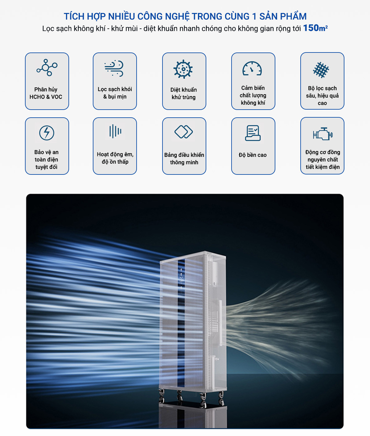 Động cơ mạnh mẽ: Trang bị động cơ bền bỉ, hoạt động ổn định, ít hỏng hóc, đảm bảo hiệu suất lọc khí liên tục.
