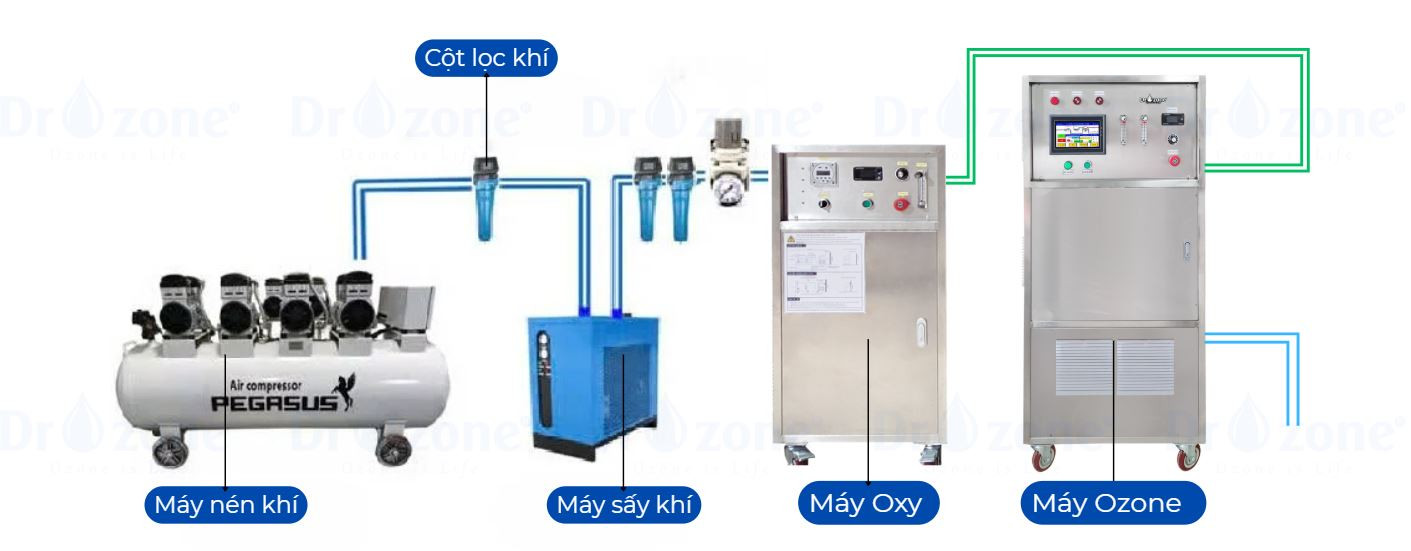 - Hệ thống tách ẩm khí đầu vào, tăng hiệu suất tạo ozone và kéo dài tuổi thọ máy.