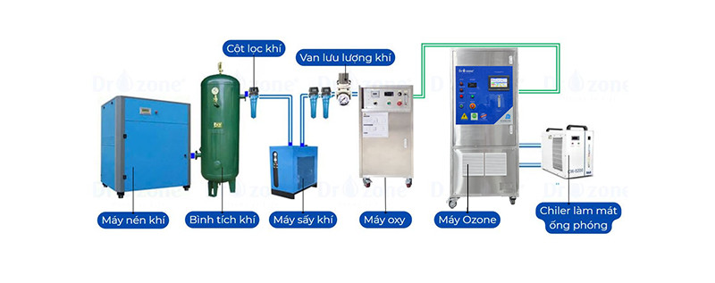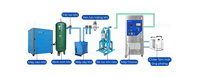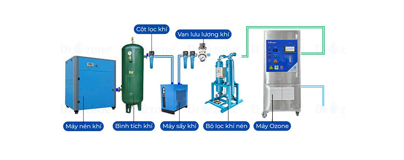 - Hệ thống tách ẩm khí đầu vào, loại bỏ hơi nước, giúp tăng hiệu suất tạo ozone và kéo dài tuổi thọ máy.