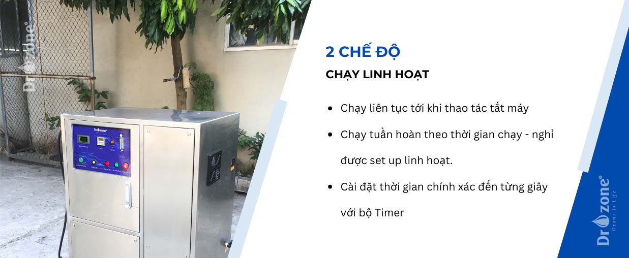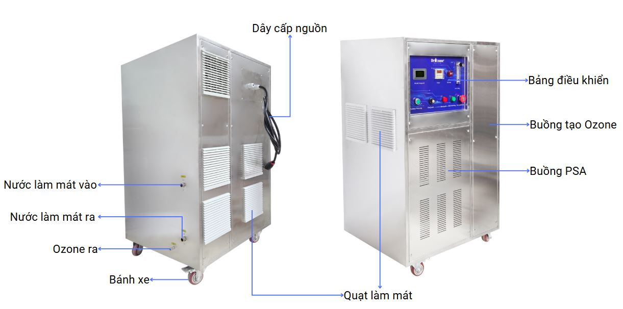 - Ozone không cần kho bảo quản như hóa chất khác. Ozone sản sinh trực tiếp thông qua thiết bị tạo ozone công nghiệp Dr.Ozone.