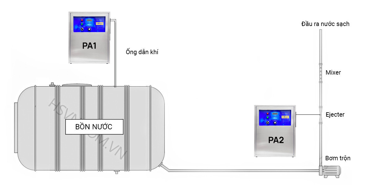 Mô hình khử trùng nước PA.2 bằng hệ thống trộn Ozone chuyên dụng