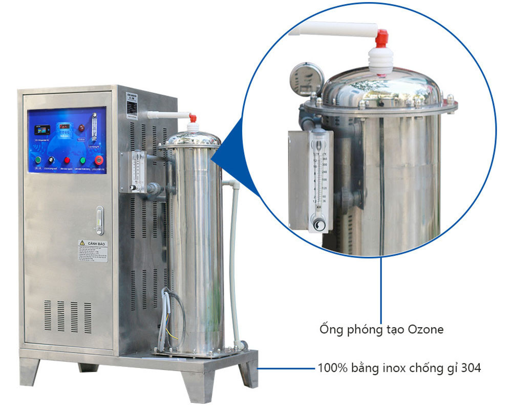 Buồng Ozone được chế tạo bằng vật liệu cách điện và có độ bền trên 100 nghìn giờ làm việc (vài chục năm). Dùng Thép inox số 304 và 444L làm điện cực Ozone / Dùng nhựa UPVC trơn làm Sát si - tăng độ cách điện và chống dính bụi bẩn … Máy đã nhiệt đới hóa cao độ ngay từ khâu thiết kế: Toàn bộ các linh kiện điện tử sử dụng đều là loại khô đặc rắn (Solid State) chất lượng rất cao / Bộ khiển chế (CPU) với mạch tích hợp số (IC) chuyên dụng / Bộ cao tần công suất thích ứng rộng, dự trữ an toàn lớn … từng tổ kiện, bộ kiện chế tạo OEM còn được bảo vệ chắc chắn trong các khối Epoxy đúc chân không và đều đã tiêu chuẩn hóa, thống nhất hóa, dễ dàng lắp máy theo các cấu hình tùy chọn, dễ dàng sửa chữa, thay thế, nâng cấp khi cần. Các sự cải cách, cẩn trọng và tinh vi đó đã làm cho máy hiện đại hơn, dễ sử dụng hơn, ổn định, tin cậy và thật bền bỉ. Vì vậy chúng tôi đã nâng thời hạn bảo hành lên 03 năm cho buồng Ozone và 01 năm cho các bộ phận khác.