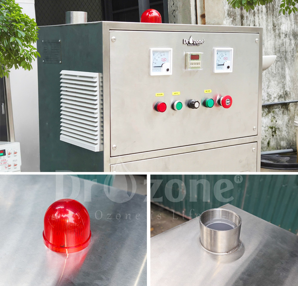- Đường ống ra Ozone lót PVC: Chất liệu PVC có khả năng chịu ozone tốt, đảm bảo hiệu quả dẫn khí.