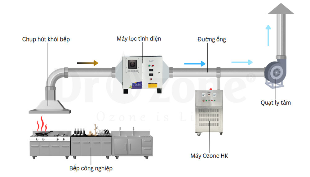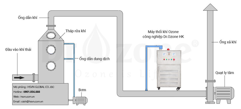 Mô phỏng hệ thống xử lý máy ozone khử mùi Dr.Ozone HK