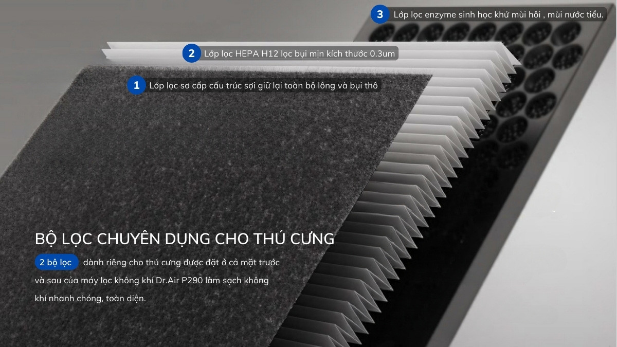 Dr.Air P450 là sự kết hợp hoàn hảo giữa công nghệ lọc cơ học và khử trùng sinh học.